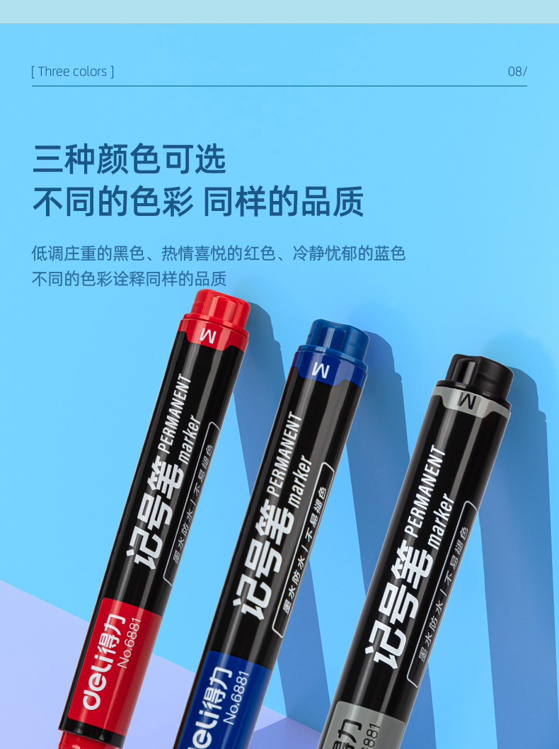 得力記號筆6881藍色紅色黑色標記筆