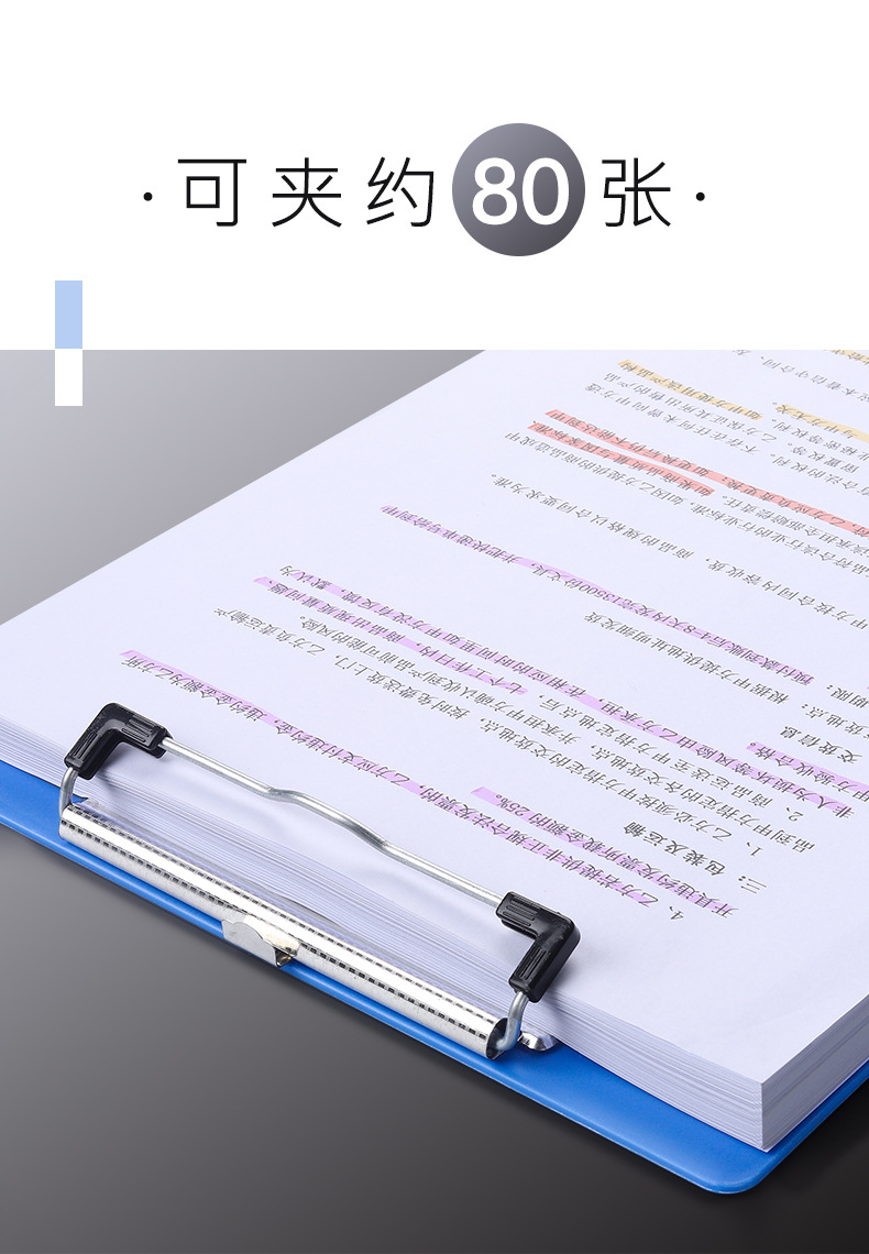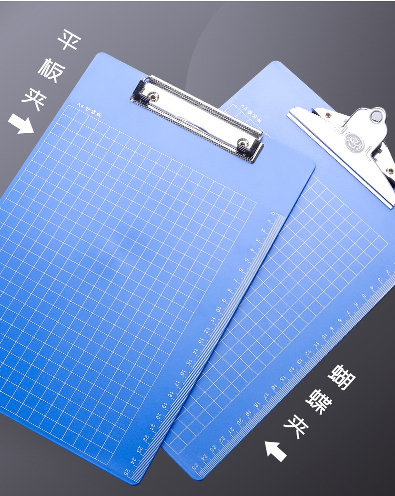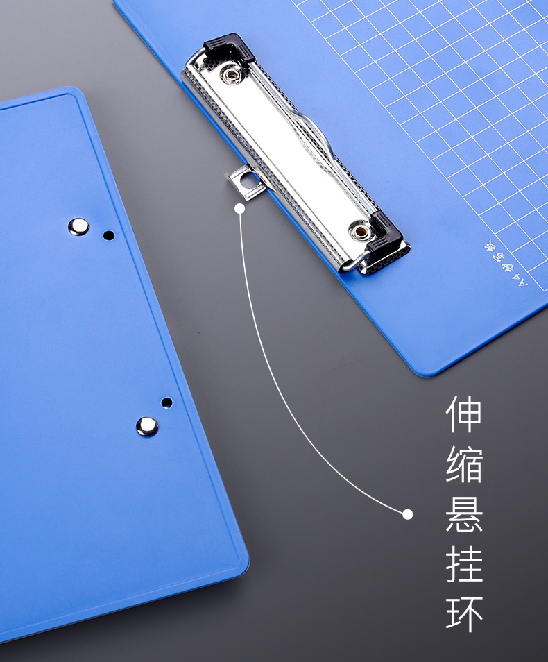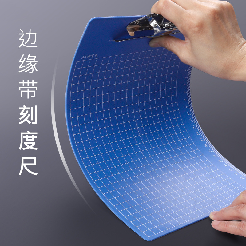 A4文件板夾藍(lán)色帶刻度平頭夾
